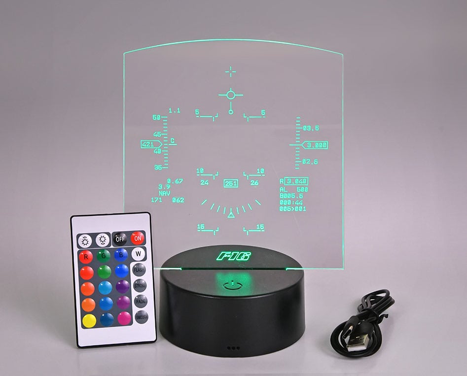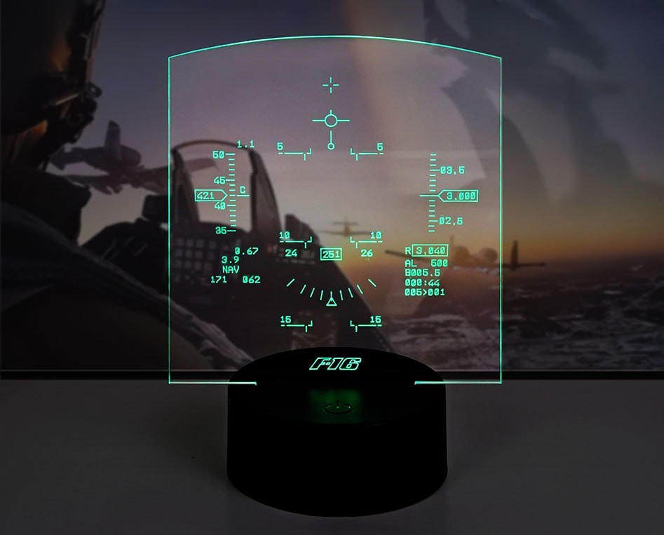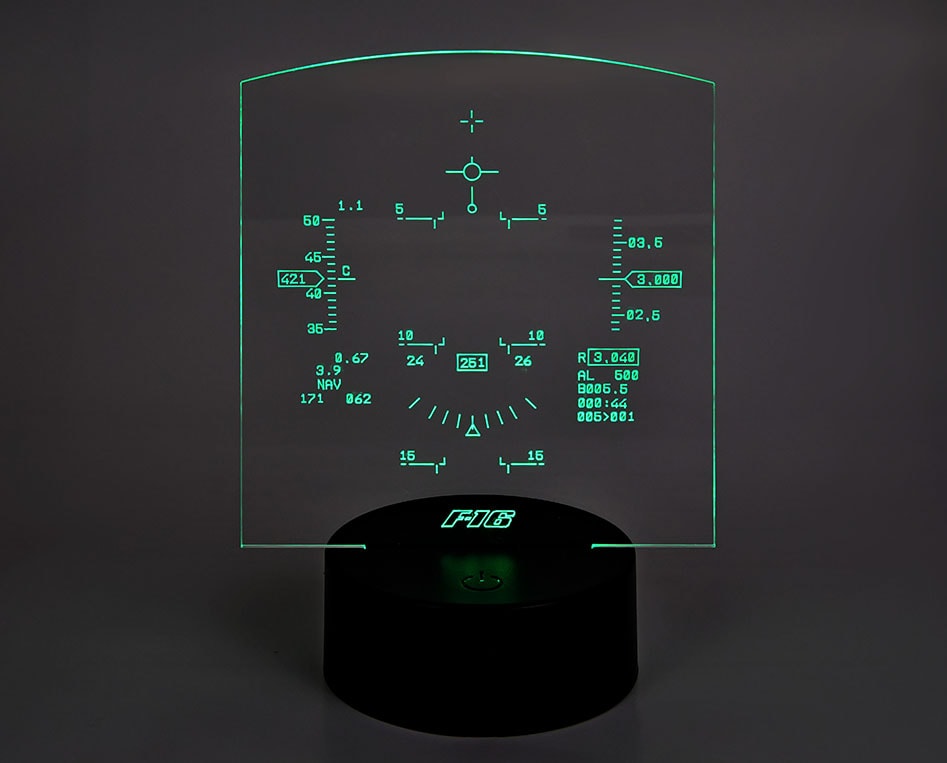 Διακοσμητικά διαφανή επιτραπέζια αεροπορικά φωτιστικά Aeroprint, σειρά απομίμησης HUD αγαπημένων μας αεροσκαφών! Απαραίτητο συμπλήρωμα του περιβάλλοντος χώρου κάθε αερόπληκτου, προσθέτει μια έξυπνη και άμεση αεροπορική νότα με διακριτικό τρόπο που προσαρμόζεται στην αισθητική κάθε χώρου ώστε να αποφύγουμε και τυχόν γκρίνιες από άμπαλες συγκατοίκουσες οντότητες!