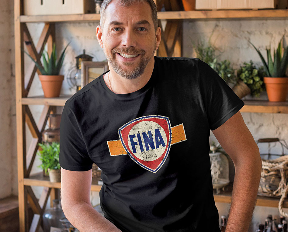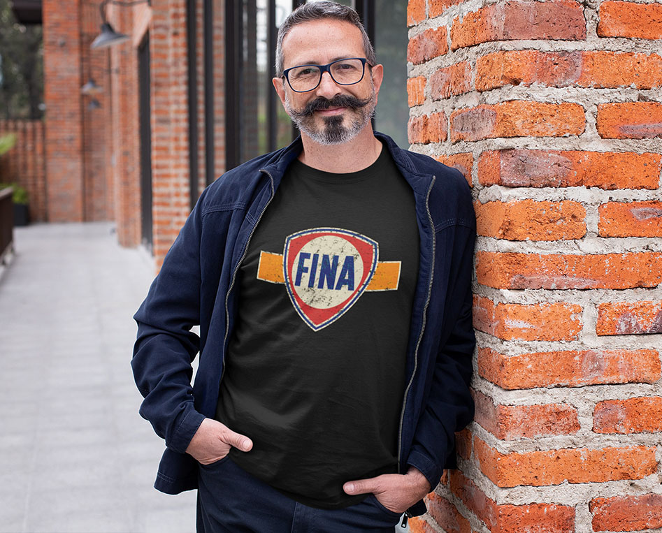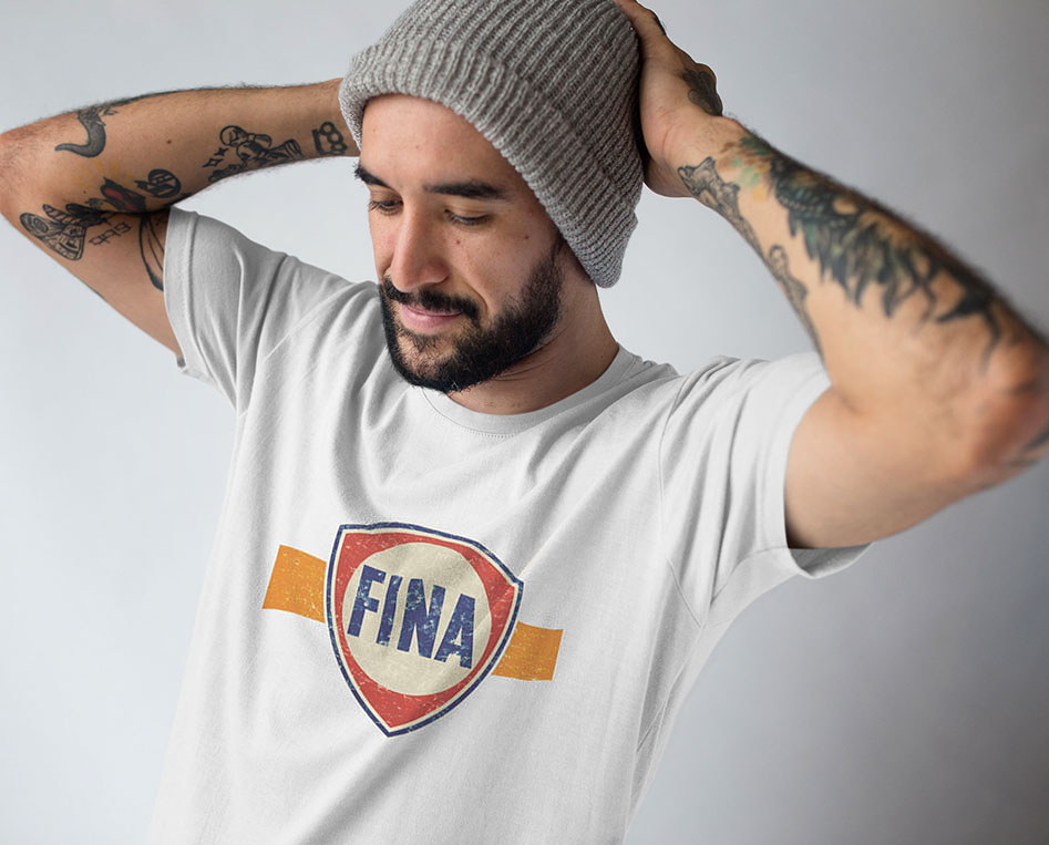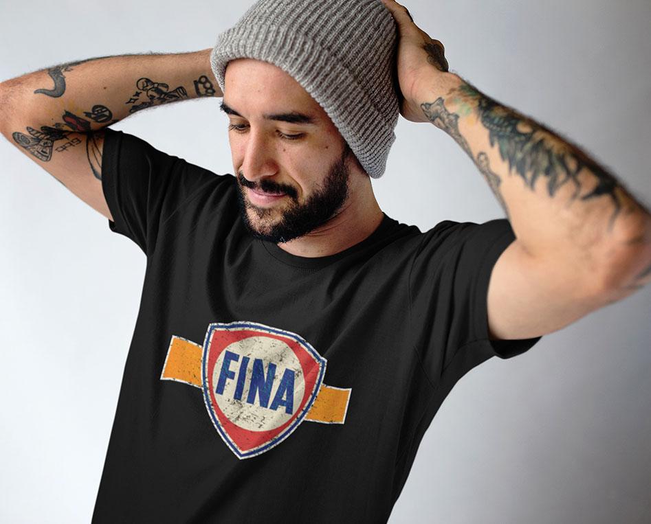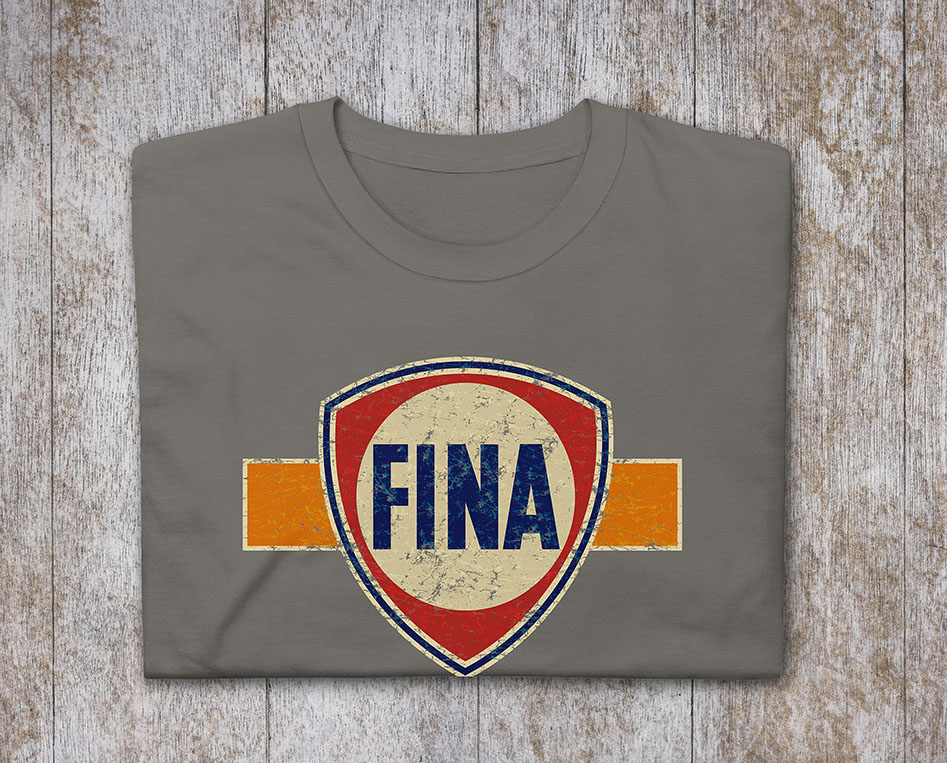 Vintage FINA Fuel Logo T-Shirt – Retro Petrolhead Nostalgia – Distressed Classic Racing Tee