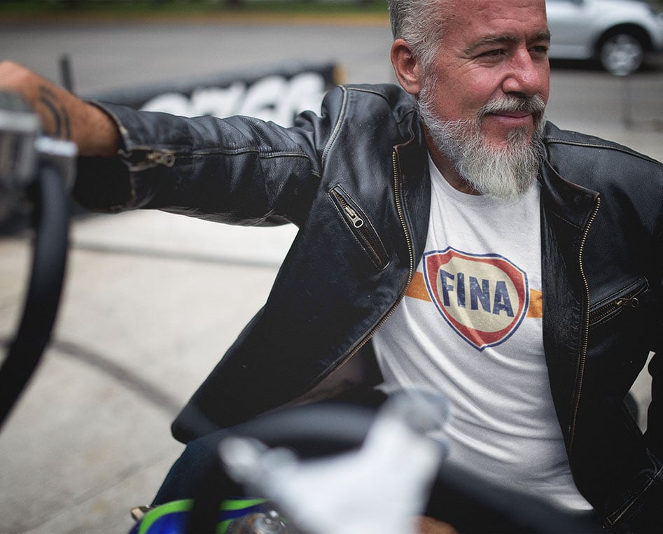 Αναβιώστε τη χρυσή εποχή των pits και των ιστορικών rally με το Vintage FINA Fuel Logo T-Shirt. Ένα σχέδιο με αυθεντική distressed (φθαρμένη) αισθητική, αφιερωμένο στους λάτρεις του κλασικού μηχανοκίνητου αθλητισμού και της petrolhead νοσταλγίας.