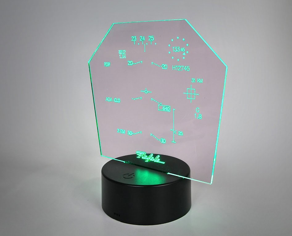 Διακοσμητικά διαφανή επιτραπέζια αεροπορικά φωτιστικά Aeroprint, σειρά απομίμησης HUD αγαπημένων μας αεροσκαφών! Απαραίτητο συμπλήρωμα του περιβάλλοντος χώρου κάθε αερόπληκτου, προσθέτει μια έξυπνη και άμεση αεροπορική νότα με διακριτικό τρόπο που προσαρμόζεται στην αισθητική κάθε χώρου ώστε να αποφύγουμε και τυχόν γκρίνιες από άμπαλες συγκατοίκουσες οντότητες!